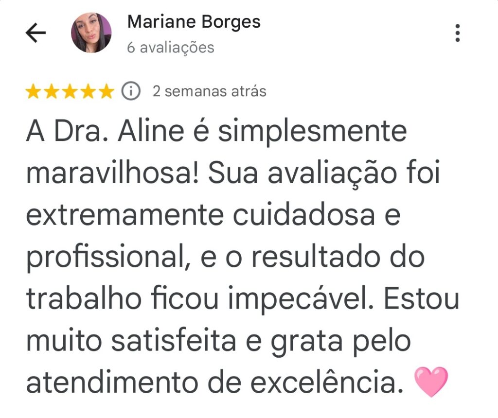 Prazer, sou a Dra. Aline Rocha conhecida como a Rainha das Bocas.